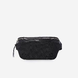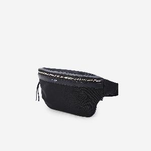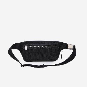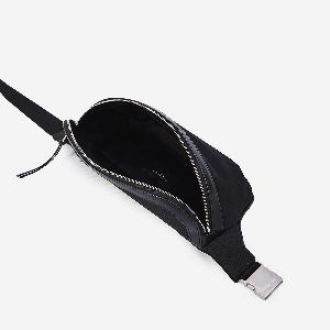 Classic belt bag in black canvas with leather trim. Featuring Saint Laurent Paris embossed logo on the front, adjustable strap with buckle, zip closure, one main internal compartment, three internal card slots, and a zip pocket on the back.