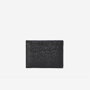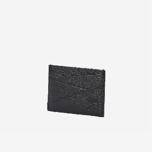 Puzzle Edge card holder in black grained calfskin with embossed Anagram logo. Features four card slots and one top envelope-style compartment.