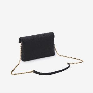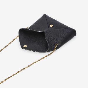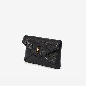 Envelope bag in black grained lambskin leather. Features a chain shoulder strap, magnetic closure with Cassandre detail, one main compartment with flat pocket.