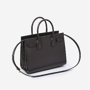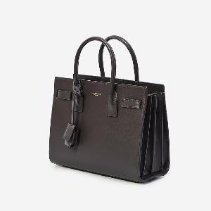 Sac De Jour Baby bag in Urban grey calfskin leather with side gussets. Features dual fixed top handles, adjustable and removable shoulder strap, two main internal compartments separated by a zip pocket, and a removable padlock with leather case. Metal feet.
