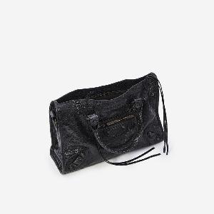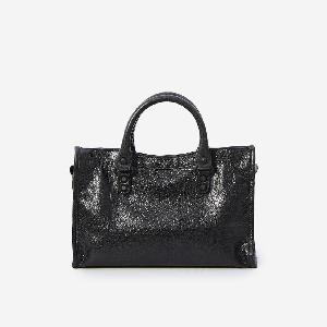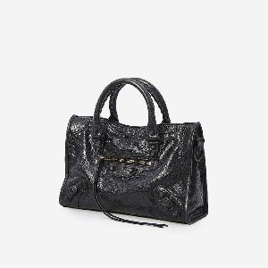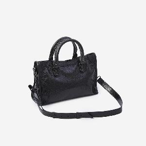 Black Arena Storico lambskin bag. Features two fixed top handles, a removable and adjustable shoulder strap, brass studs and buckle detail, front zipped pocket with leather puller, top zip closure with leather puller, one main compartment, one internal zipped pocket, and cotton canvas lining.