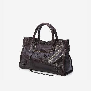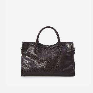 Le City medium bag in Espresso-brown Arena Storico lambskin leather with brass hardware. It features hand-woven double leather handles, an adjustable and removable shoulder strap, a front zip pocket, zip closure, one main internal compartment, and an internal zip pocket. Cotton canvas lining.