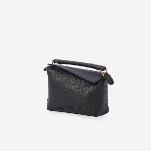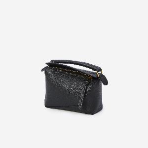 Bag in soft black granata calf leather. Featuring a fixed top handle, adjustable and removable shoulder strap, embossed Anagram on the front, zip closure, one main compartment, and cotton-linen lining.