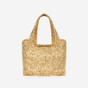 Composition : 90% raphia, 10% viscose; details: 100% calfskin