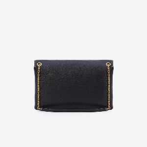 Large pouch in black hammered lambskin leather. Features a sliding chain shoulder strap, magnetic closure with Cassandre detail, main compartment with a flat pocket.
