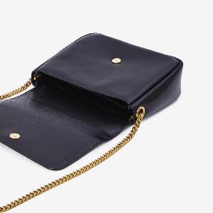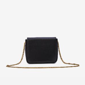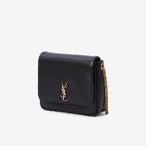Bag in glossy black lambskin leather. Features a chain shoulder strap, front magnetic closure with Cassandre logo, main compartment with a flat pocket.
