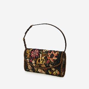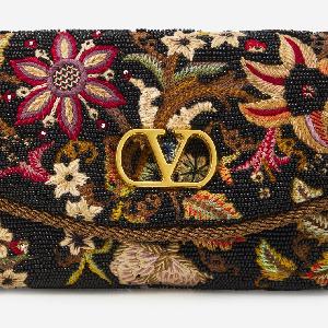 Valentino Garavani DeVain bag in fabric with a multicolor beaded floral embroidery.
