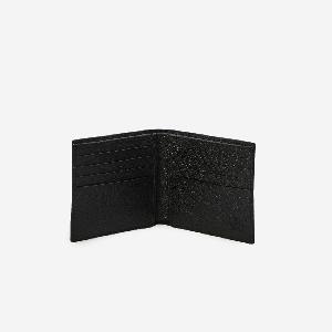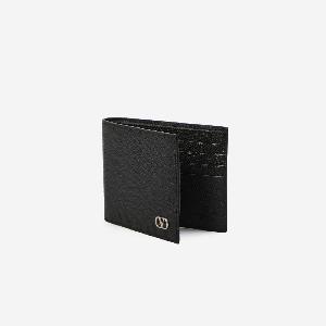 Black hammered calfskin wallet. It features a VLogo Signature in ruthenium, one compartment for bills, eight card slots, and two additional pockets.