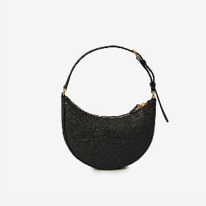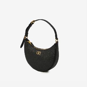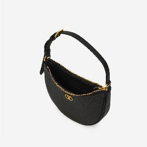 Bag in soft black grained calf leather. It features an adjustable top handle, antique gold-tone metal VLogo Signature on the front, zip closure, one main compartment, one internal flat pocket, and leather lining.