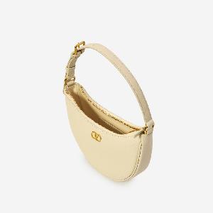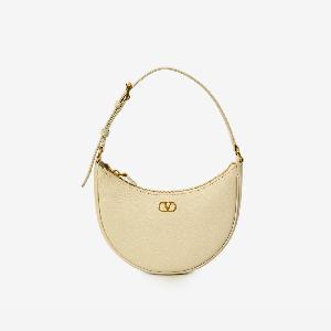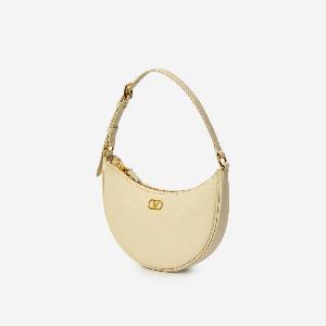 Bag in soft light ivory grained calf leather. It features an adjustable top handle, antique gold-tone metal VLogo Signature on the front, zip closure, one main compartment, one internal flat pocket, and leather lining.